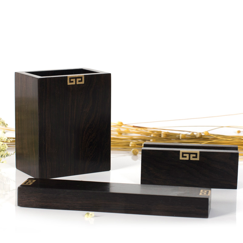 木质礼品 木之礼 嵌铜回纹·文房三件套 笔筒+名片盒+镇纸 工艺:嵌铜片
