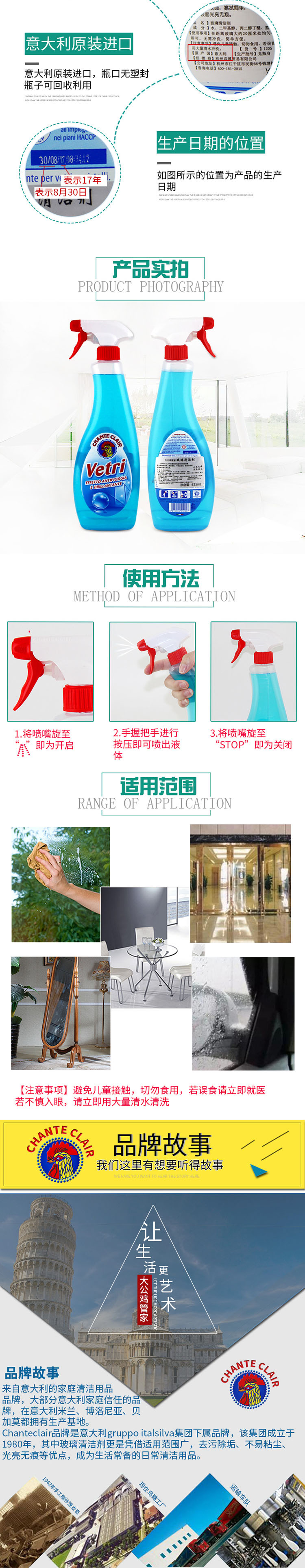 大公鸡管家玻璃清洁剂擦玻璃水家用 625ml*2